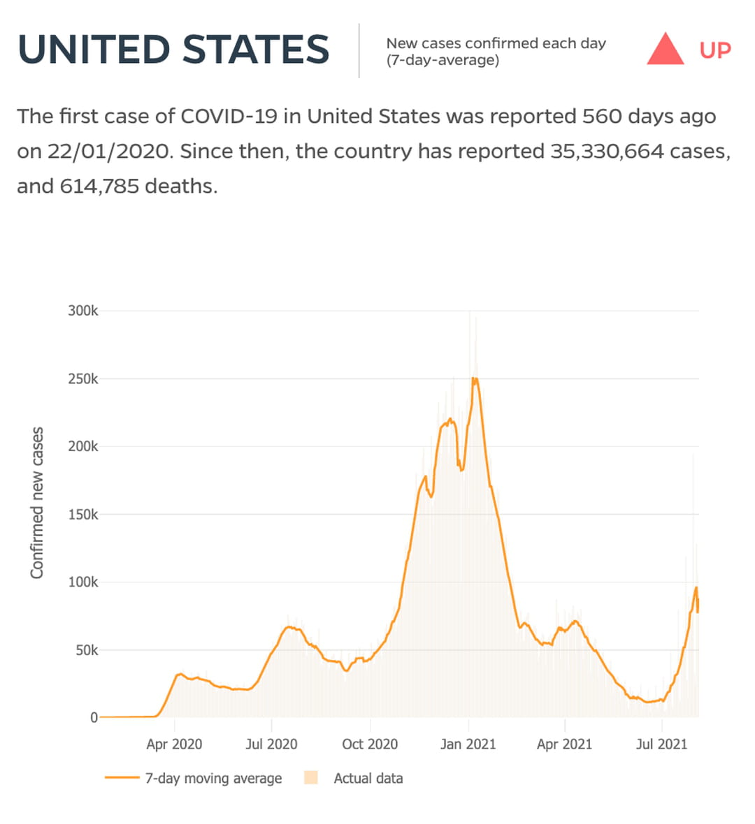 Les États-Unis sont le pays le plus lourdement affecté au monde par la pandémie de coronavirus en chiffres absolus. C'est toujours un des foyers majeurs de l'épidémie en juin 2021.