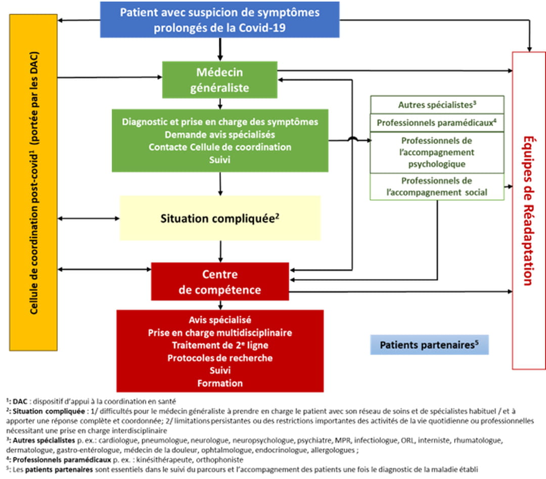 - Symptômes prolongés de Covid-19 : orienter les personnes concernées, informer leurs professionnels de santé. Ministère de la Santé. 5 mars 2021.