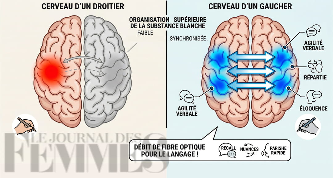 Là où un droitier aura tendance à traiter le langage de manière très latéralisée (principalement dans l'hémisphère gauche), le gaucher mobilise ses deux "processeurs" en parfaite harmonie. Cette particularité biologique explique pourquoi certains gauchers font preuve d'une grande aisance oratoire ou d'une agilité particulière dans les jeux de mots et la rhétorique, même si les chercheurs restent prudents sur l'application systématique de ce constat à chaque individu.
