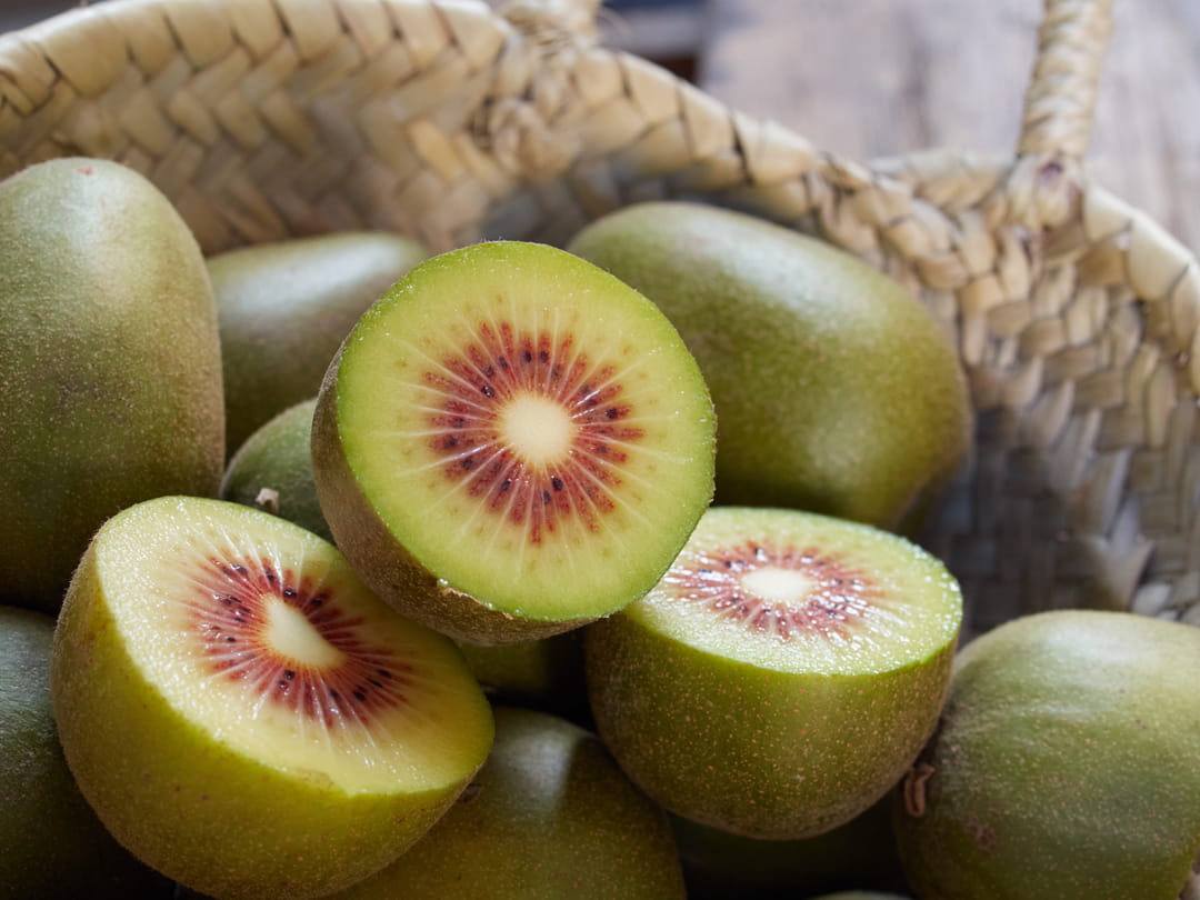 Considéré comme un "petit trésor saisonnier" par les primeurs, ce nouveau fruit est le kiwi rouge. Aussi appelé Red, Ruby Red, Kiwi Rossy ou Red Passion, il est plus petit que les autres kiwis et présente une chair verte tendre avec un anneau central rouge. Son goût est encore plus doux et plus sucré que le kiwi jaune (Gold) avec des notes de fruits rouges ou de miel. C'est une variété moins courante que le kiwi vert (Hayward) ou le kiwi jaune (SunGold), sa disponibilité est donc plus limitée et son prix reste assez élevé (environ 1.25 euro le kiwi).