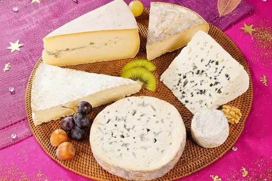 Le fromage est un pilier essentiel du repas, surtout en France. On propose habituellement un assortiment qui couvre différentes familles de fromages et de laits pour satisfaire tous les goûts au moment des fêtes. Le fromage est délicieux mais attention : il est gras, calorique et peut donc peser lourdement sur la digestion. Les pires choix sont les fromages riches en lactose (Mascarpone), les fromages fondus industriels (Vache qui rit, Kiri, Babybel...) bourrés d'additifs, ainsi que les fromages extrêmement gras qui ralentissent l'action de l'estomac, comme les fromages à Triple Crème (Brillat-Savarin, Délice de Bourgogne).
