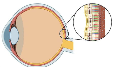 Mais pourquoi se trompe-t-il ainsi ? Hinnerk Schulz-Hildebrandt rappelle que nos yeux possèdent trois types de cellules sensibles aux couleurs, appelées "cônes", qui détectent respectivement les longueurs d'onde correspondant au rouge, au vert et au bleu. Or les cônes sensibles au bleu sont presque absents de la fovéa, la zone centrale de notre rétine, celle qui correspond à l'endroit exact où se focalise notre regard. Résultat : quand on fixe un point directement sur l'illusion d'optique, on perçoit moins de bleu, et le point paraît plus violet.