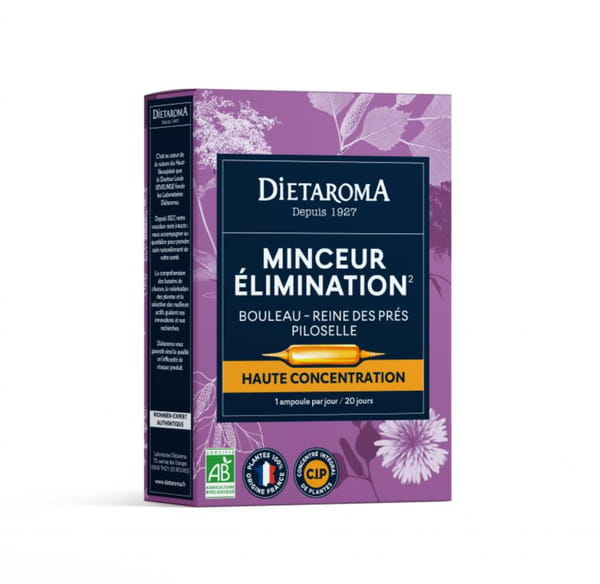 La meilleure note de ce comparatif revient aux ampoules C.I.P. Minceur Élimination de la marque Dietaroma, qui décrochent un 18/20. Ce produit, proposé à 16,32 € la boîte de 20 ampoules, se distingue par son label bio et son mode de fabrication français. Il utilise une technologie d'extraction à l'eau qui permet de récupérer le "totum" de la plante (bouleau, reine des prés, piloselle). Malgré ces bons résultats, 60 millions de consommateurs nuance en ajoutant que "les compléments alimentaires ne sont pas des produits anodins". Il est primordial de demander conseil à un médecin, d'éviter d'associer plusieurs compléments, et de noter que ces cures sont déconseillées en cas de diabète ou d'insuffisance rénale.