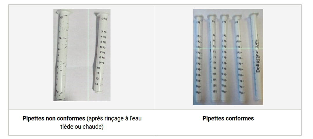 L'Agence du médicament, ainsi que le laboratoire Opella Healthcare France qui le commercialise, précise que la qualité du sirop lui-même n'est pas remise en cause. Le problème vient de l'accessoire : la pipette graduée. En raison d'un souci de fabrication sur l'un des sites de production, les graduations de certaines pipettes s'effacent progressivement après avoir été rincées à l'eau tiède ou chaude. Sans graduations lisibles, il devient impossible de mesurer précisément la dose de paracétamol à administrer. Cela peut conduire à un surdosage, et notamment causer des lésions du foie. "Ce risque, bien que faible, existe chez les bébés et les jeunes enfants chez lesquels une atteinte du foie peut survenir en cas de prises répétées à des doses trop élevées", précise l'ANSM dans son communiqué.